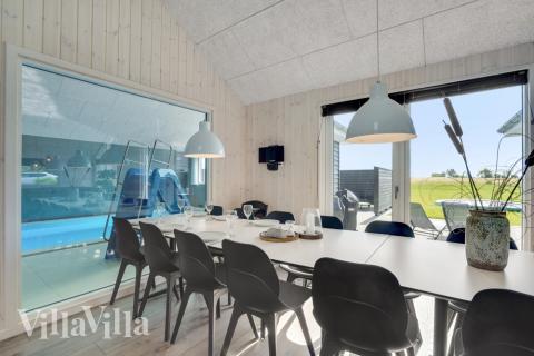 This luxury house is located in Hostrup, in the scenic area near the Limfjord. The house can accommodate up to 18 people and provides the perfect setting for a great family holiday. The holiday home is just a walk from the beach and boasts a wealth of games and swimming opportunities both indoors and outdoors. Fun, cosiness and play are 3 things that are guaranteed here!