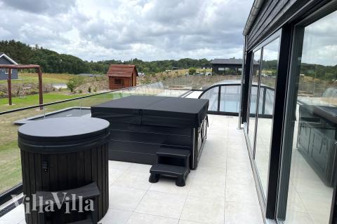 This luxurious holiday home in Hostrup, near the Limfjord, can accommodate up to 36 people and is located just a short walk from the beach. With its 310 square metres, beautifully landscaped garden and wide range of activities, this house is ideal for larger groups and families of all ages. • Outdoor pool • Private playground with lots to keep the kids happy • Exquisite outdoor kitchen and wellness area This house has ten bedrooms across two separate sleeping areas... Read more