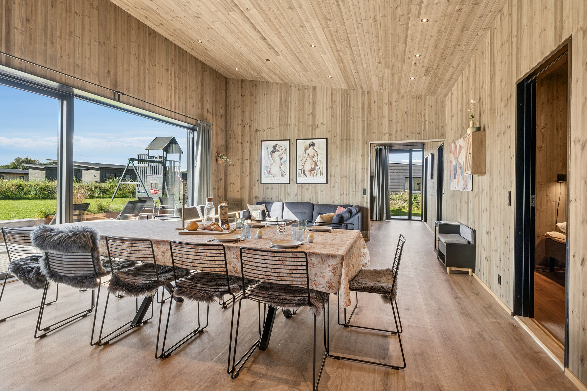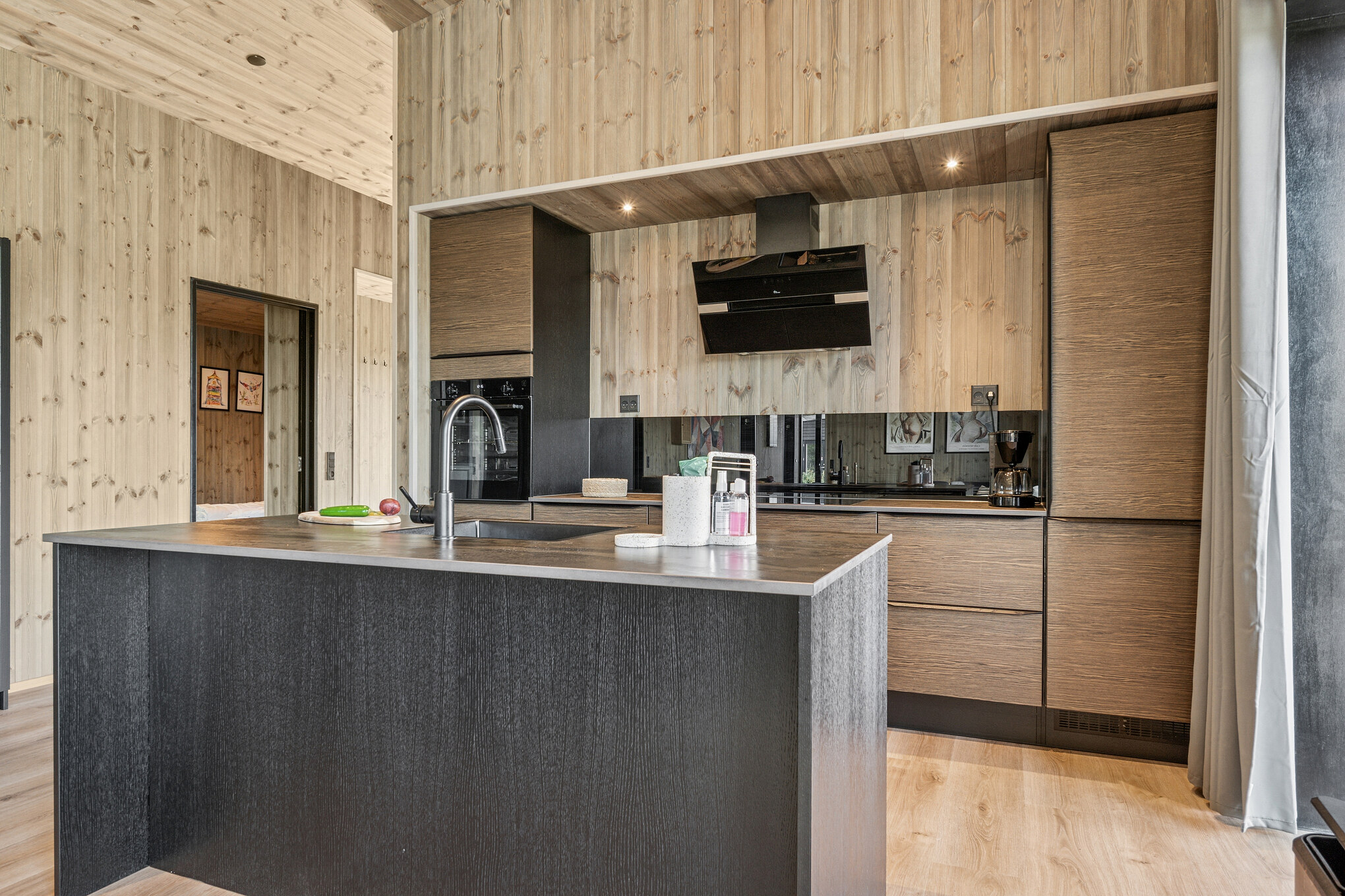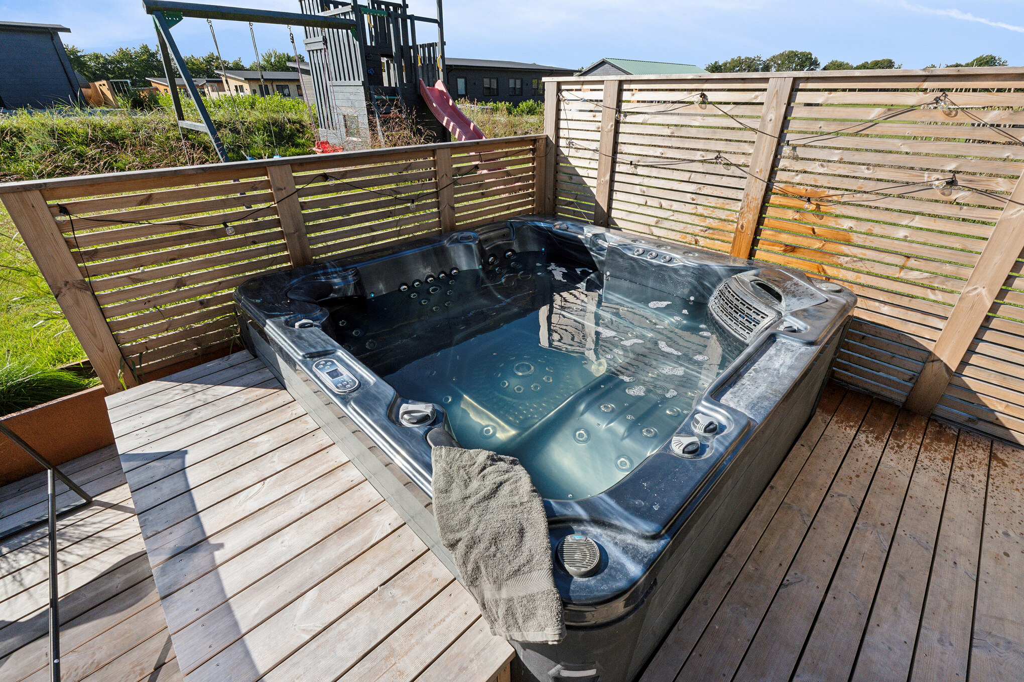 For indoor fun, the activity room is ready and waiting with both games and a sofa area – perfect for relaxing evenings or mini-tournaments. All of the rooms have direct access to the lovely garden and wooden terrace which wraps the whole way around the house. Fire up the gas barbecue and enjoy summer evenings while the kids play in the garden. The tranquil wellness area with whirlpool and outdoor shower are the icing on the cake and perfect if you want to pamper yourself under an open sky.
