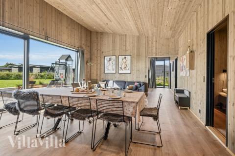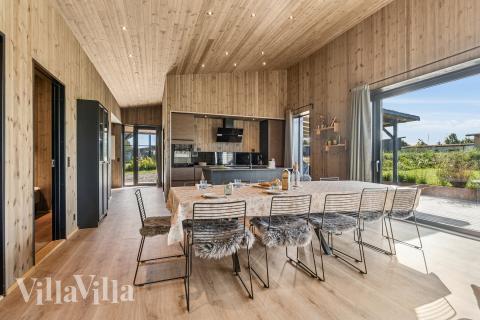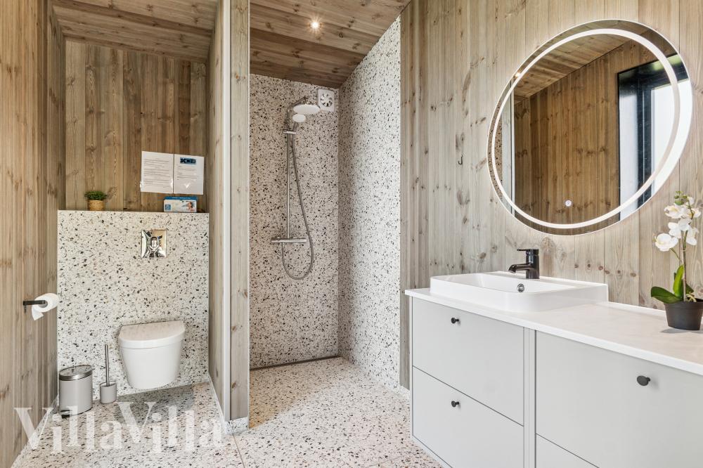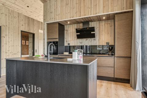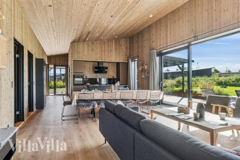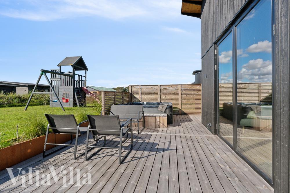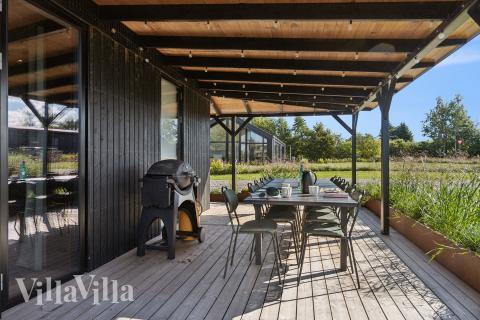 For indoor fun, the activity room is ready and waiting with both games and a sofa area – perfect for relaxing evenings or mini-tournaments. All of the rooms have direct access to the lovely garden and wooden terrace which wraps the whole way around the house. Fire up the gas barbecue and enjoy summer evenings while the kids play in the garden. The tranquil wellness area with whirlpool and outdoor shower are the icing on the cake and perfect if you want to pamper yourself under an open sky.