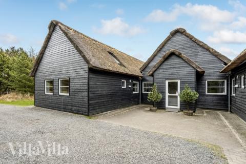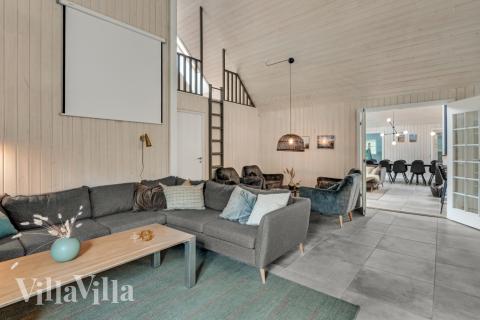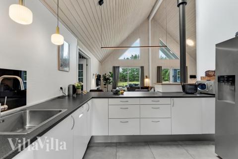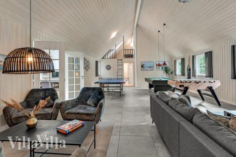 Welcome to this fantastic summer house located in scenic Blåvand. The house is built by Skanlux and is a sure-fire hit no matter the time of year thanks to its large, bright and architecturally beautiful spaces and its many options for activity and entertainment. It has its very own mini water park where you can swim in the 25 m2 pool with Roman steps and counter-current system. You can also pamper yourself in the house's whirlpool and warm yourself up... Read more