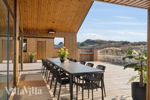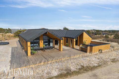 Get ready to discover a true paradise for your whole family or friend group and enjoy a holiday that combines luxury and Danish hygge in scenic surroundings. This exclusive luxury holiday home is just five minutes away from the charming town of Henne Strand, where shops, cafés and nature combine to create a very special ambience. The scene is set for a holiday that will combine cherished together time with world-class comfort. The entire house is clad with gorgeous paneling on the outside, imbuing the property with an exclusive and model look.