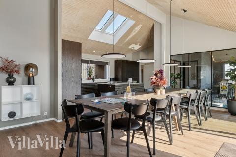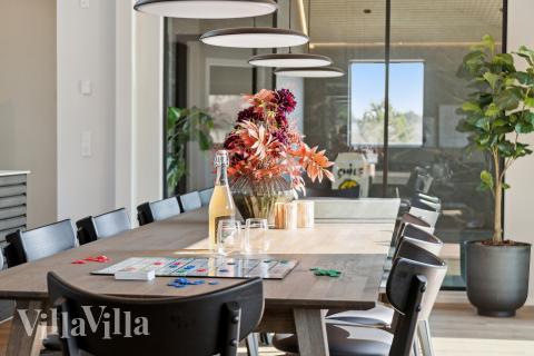 The interiors will also impress with their well-considered layout and meticulous attention to detail. The home's six bedrooms are spread across two separate sleeping areas, ensuring privacy and comfort for all guests. The house also features one cosy loft which are perfect for kids, and a charming alcove which the little ones can claim as their own cosy corner, or even spend the night. The property has three elegant bathrooms, including a practical bathroom in the pool area, so you'll never have to stand in line when getting ready for the day.