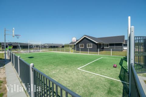 The house has a large outdoor play area and a multi-purpose court which is shared with the house next door. Out here you will find something for kids and big kids of all ages. From swings and a play tower with slides to a climbing frame and of course the large multi-purpose court. The multi-purpose court has an astroturf pitch where you can play football, basketball, football tennis, volleyball and badminton. Over in the play area you will find benches where players and spectators can enjoy a drink. Plus the summer house also has an in-ground trampoline in the garden.