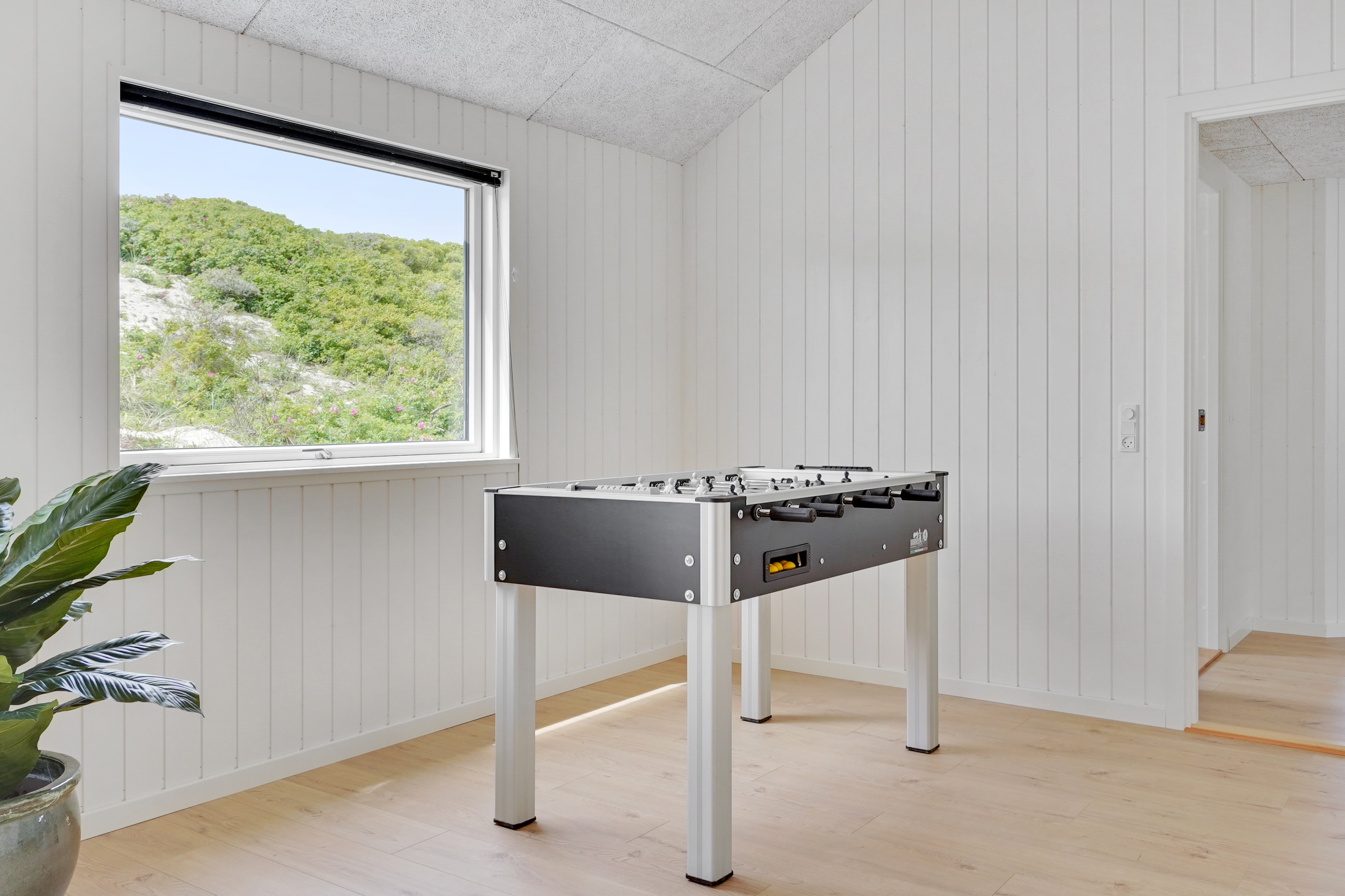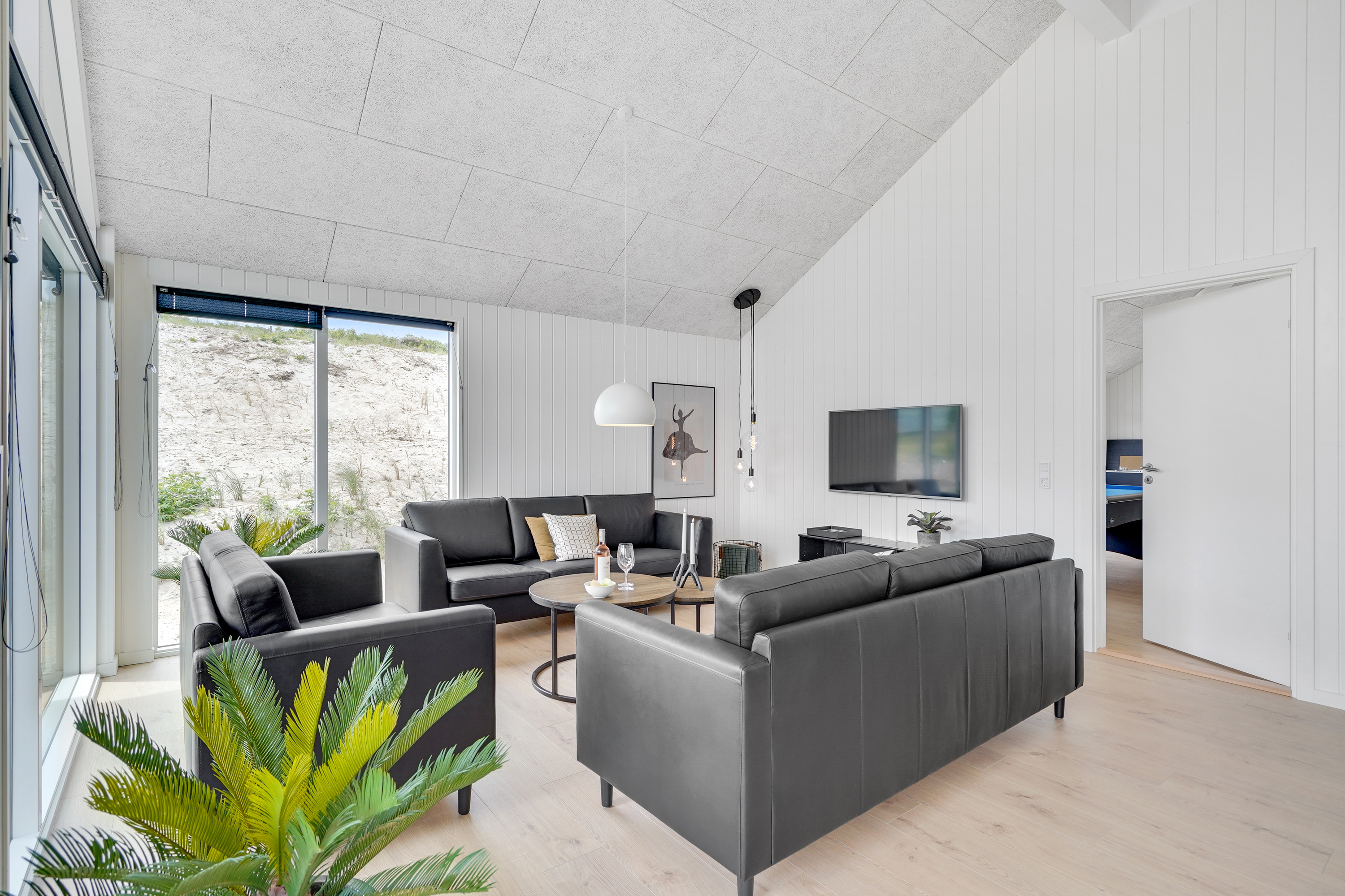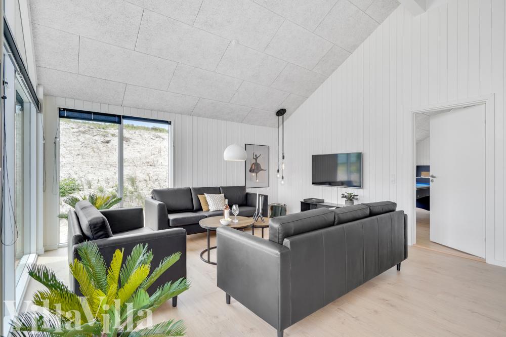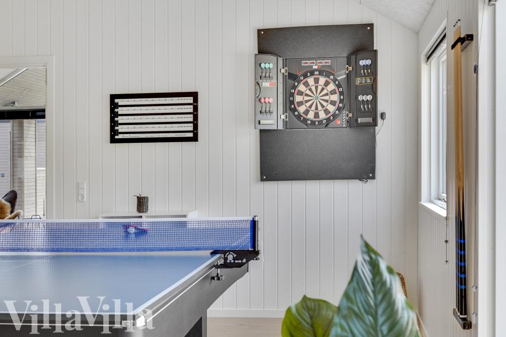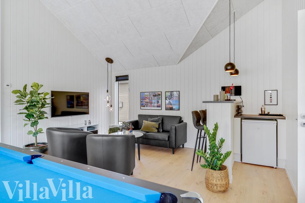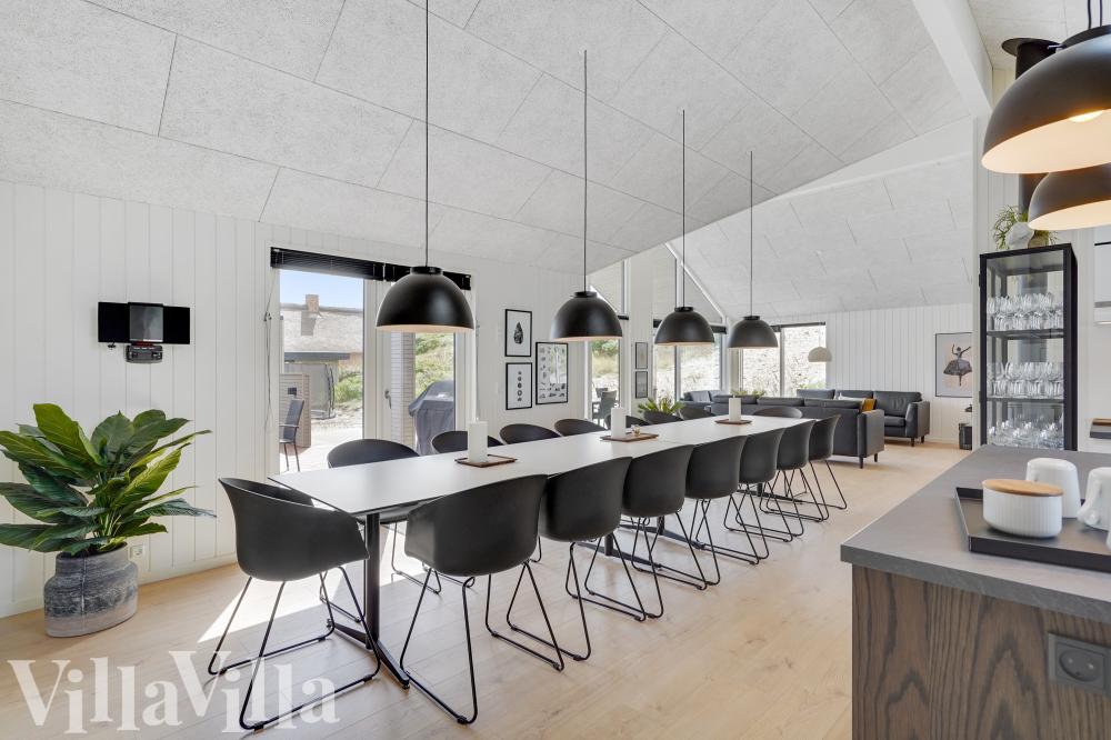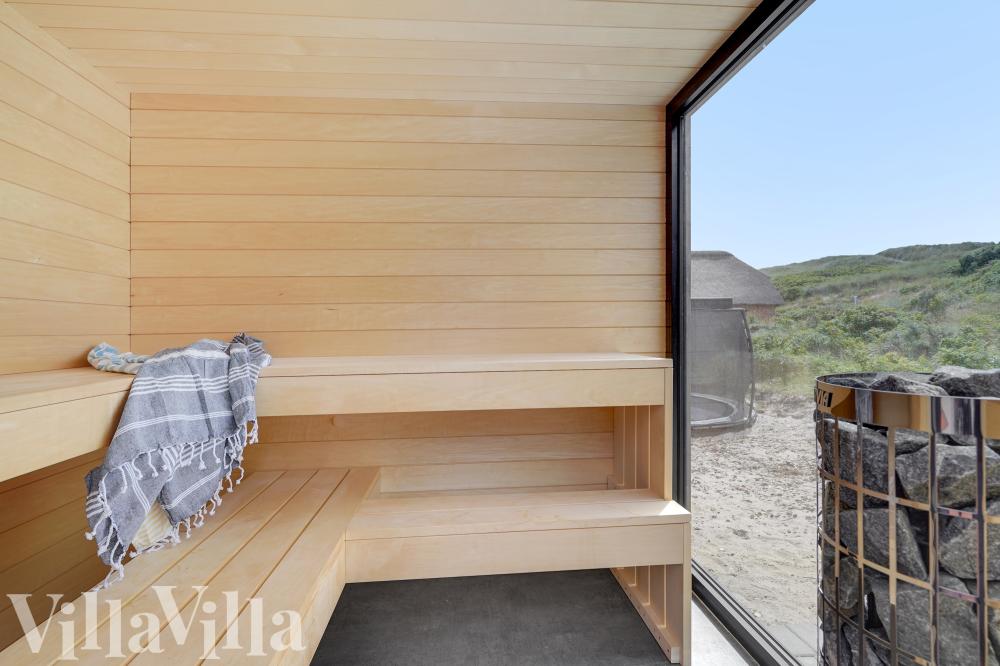 The outdoor terrace with garden furniture and barbecue is a great spot to chill out around the long dining table where you can also enjoy dinners under an open sky. After a dip in the sea – located just a few steps away – you can then unwind in the private outdoor whirlpool or warm up in the sauna, all while the kids play in the garden or swing on the swings as the sun goes down. This large holiday home in Hvide Sande is a true Together-Home where nature, luxury and togetherness all come together in harmony. A unique VillaVilla house with pool close to the North Sea!