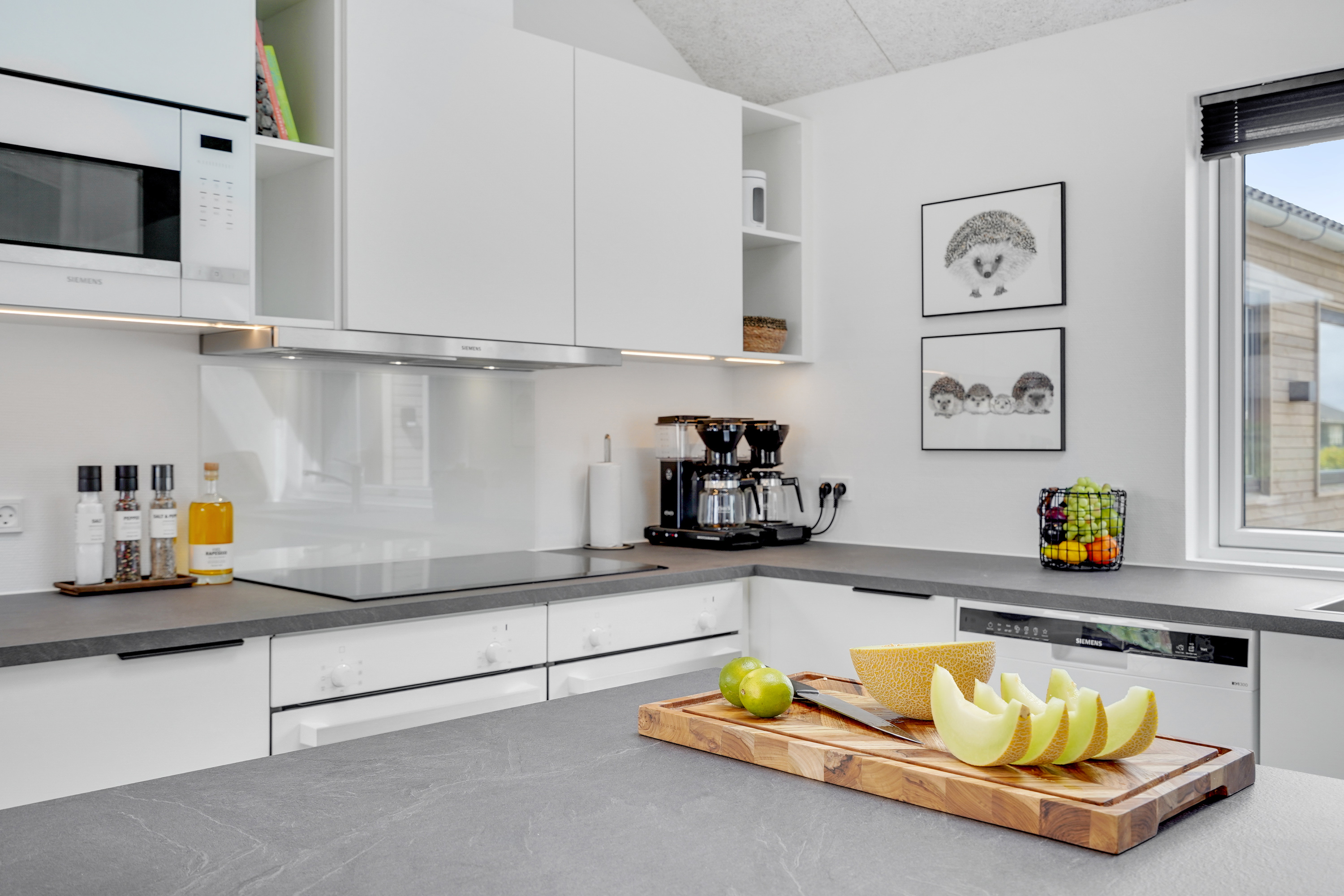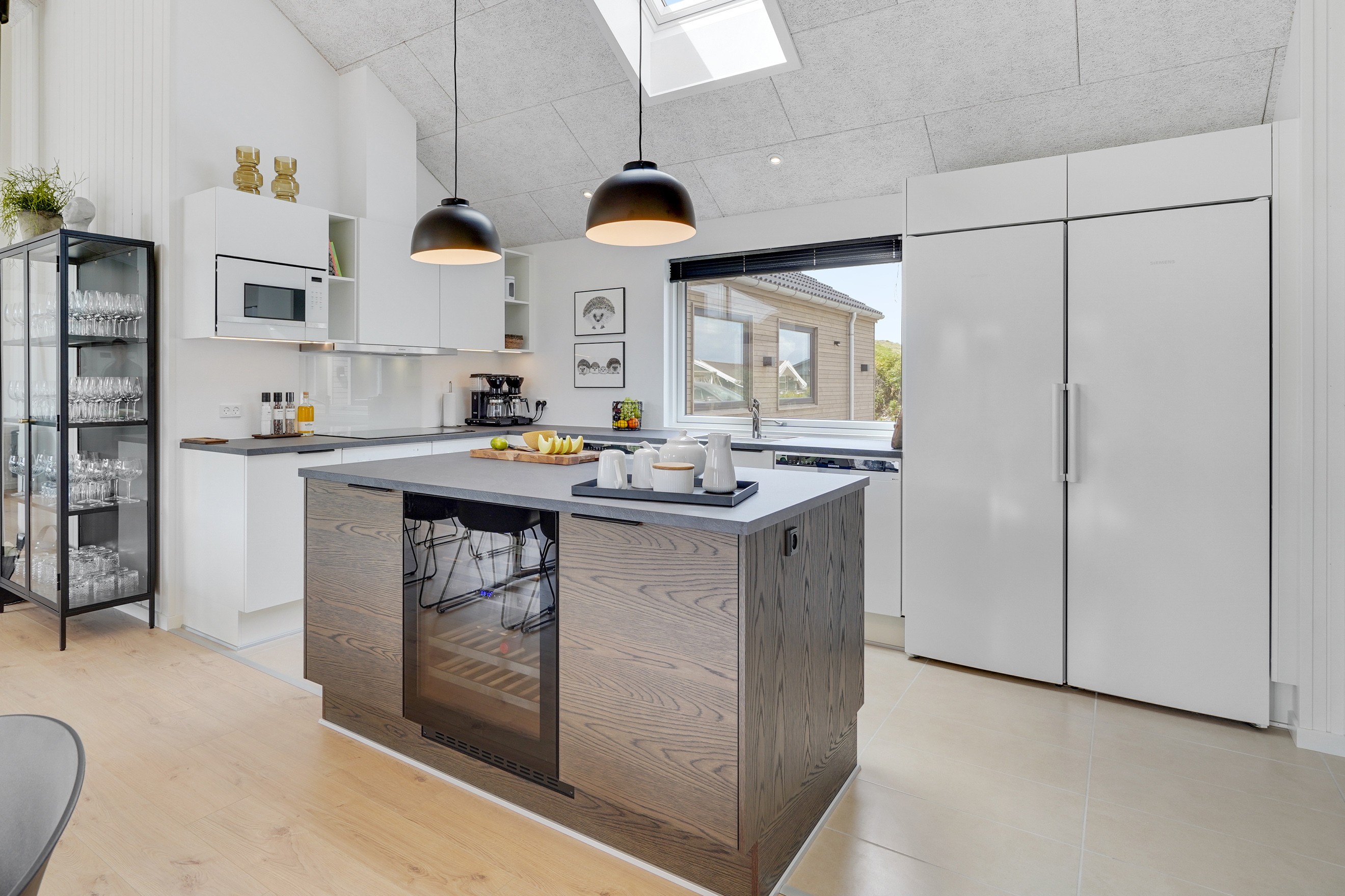 The house has been carefully considered right down to the smallest details, giving you that authentic holiday feeling from the second you step inside. Every last square metre is designed to promote togetherness and comfort – especially in the large and open living space where you can gather together for nice meals and chats as you enjoy the views. The spacious XL kitchen is equipped with everything you could need to cook meals for large groups, including plenty of counter space, two of each appliance and lots of room for many people to cook together.