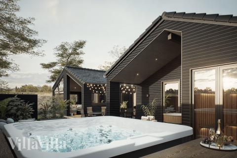 Outside, a private wellness area awaits where you can pamper yourself all year round. Here, you can relax in the warm outdoor hot tub, take a refreshing dip in the cold plunge pool, or enjoy the warmth of the outdoor sauna. The wellness area has direct access to one of the house's bathrooms, so it's easy and comfortable to move between the spa and the house. The covered lounge area has comfortable seating and patio heaters, so you can sit outside for a long time, even in the evening. You can prepare dinner on the gas grill here and enjoy it in peaceful surroundings.