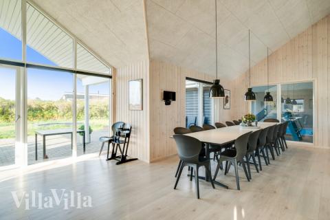 This beautiful Skanlux holiday home is located on the Danish west coast and can accommodate up to 18 people. It has bright spaces and ample room for the whole family to enjoy their summer holiday or weekend getaway. The property is located in Klegod which is a smaller holiday home area close to the beach town of Søndervig. The area is known for its natural beauty and makes a great place for long walks or wild swimming in the magnificent North Sea.