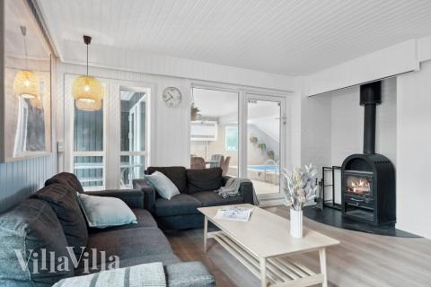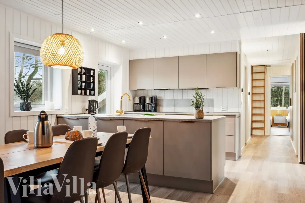 The whole house simply radiates that hygge feeling and there are activities for all ages. The hobby room has table tennis and darts and even some comfy chairs for hanging out and keeping it chill. The indoor swimming pool is an oasis of wellbeing and fun all through the year. You can swim or play games in the water no matter the weather outside, or relax in the whirlpool before warming up in the sauna. This is the ideal place to relax and have fun for both kids and adults alike.