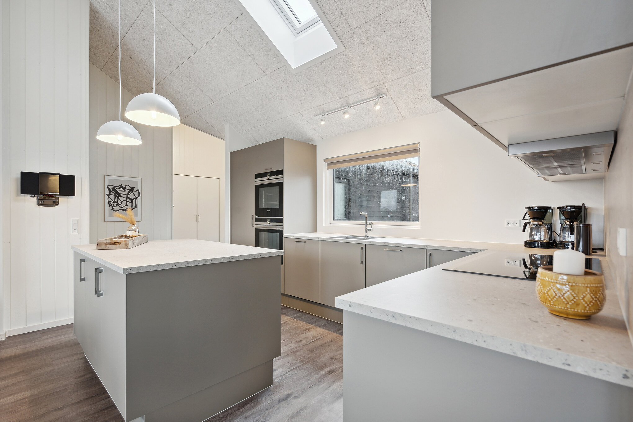 This 18-person Together-House has seven bedrooms, two lofts which between them sleep four people, and three bathrooms – perfect for both families and friend groups. The large open-plan living space is the natural heart of the home, featuring a cosy wood-burning stove, a comfortable sofa area and a long dining table where you can gather together for meals or games. Moreover, the modern XL kitchen is fully equipped with everything you'll need – including two dishwashers and two ovens, so cooking meals is a shared joy.