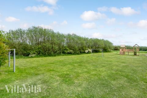 The holiday home is situated on a plot measuring 3,500 sqm in the popular beach and holiday area of Vedersø Klit. The outdoor area has a large sheltered terrace, where you can enjoy the green surroundings and the fresh air in peace and tranquillity. The large lawn provides ample room for both children and pets to keep active and entertained while you sunbathe in the garden furniture or prepare dinner on the barbecue. There is even a small private playground for younger guests.