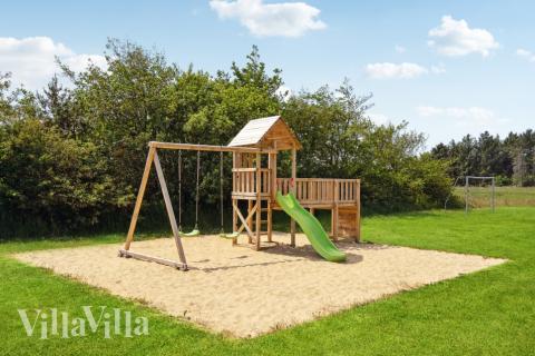 The holiday home has seven bedrooms and three bathrooms in total, ensuring plenty of comfort for up to 16 guests. The many large windows also ensure a bright and pleasant ambience and provide you with gorgeous views of the surrounding nature. The luxury holiday home has a pool, a whirlpool and a sauna so that all guests can enjoy a spot of wellness on their holiday. Spend those long summer evenings out on the large terraces with a cold drink in hand while the kids romp around in their own private playground with play tower, trampoline and football nets.